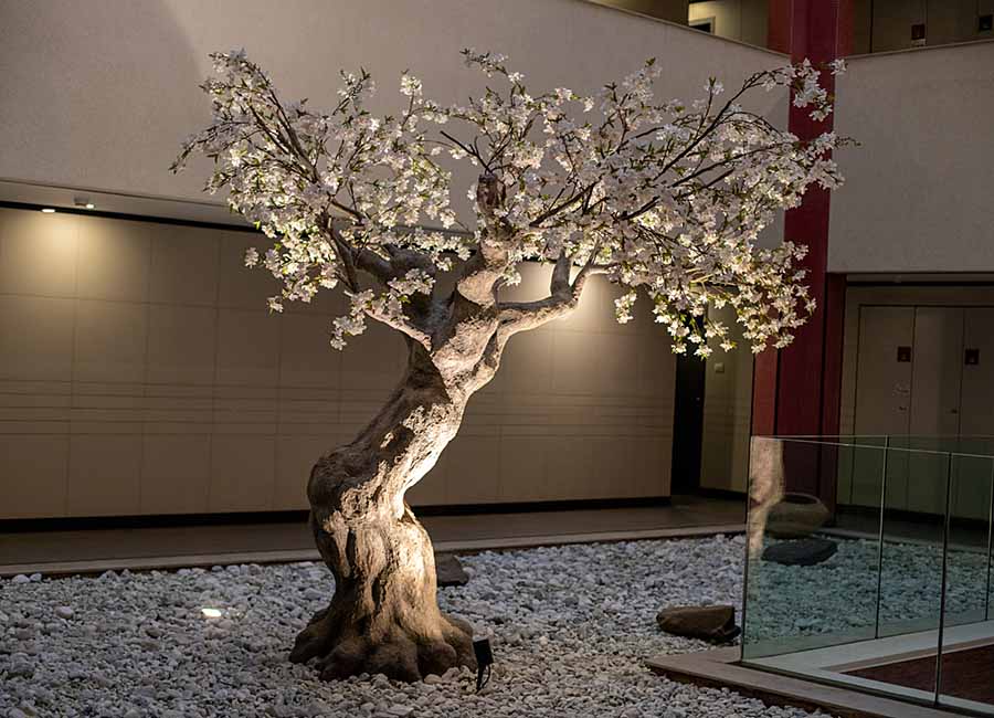 עלווה פוליאסטר, גזע טבעי חנוט או גזע מלאכותי מפוסל מחומרים אפוקסים או גזע פיברגלס המיוצר מתבנית שהועתקה מגזע טבעי