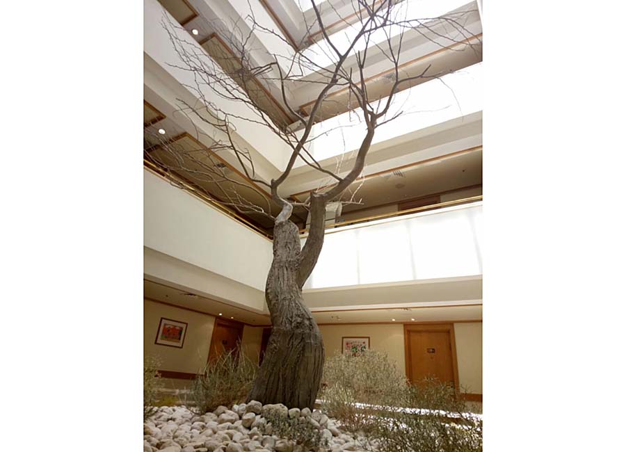 גזע טבעי חנוט או גזע מלאכותי מפוסל מחומרים אפוקסים או גזע פיברגלס המיוצר מתבנית שהועתקה מגזע טבעי